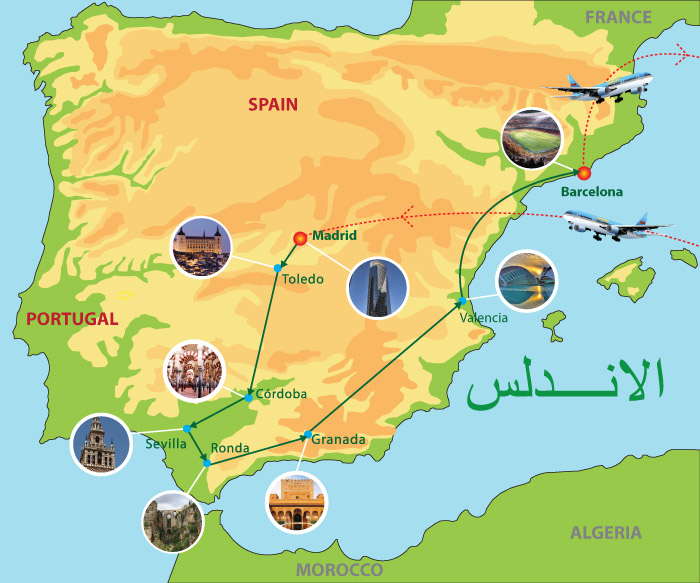AL-ANDALUS INTENSIVE III Duration : 8 Days, 7 Nights Route : Madrid, Toledo, Córdoba, Sevilla, Ronda, Granada, Valencia & Barcelona